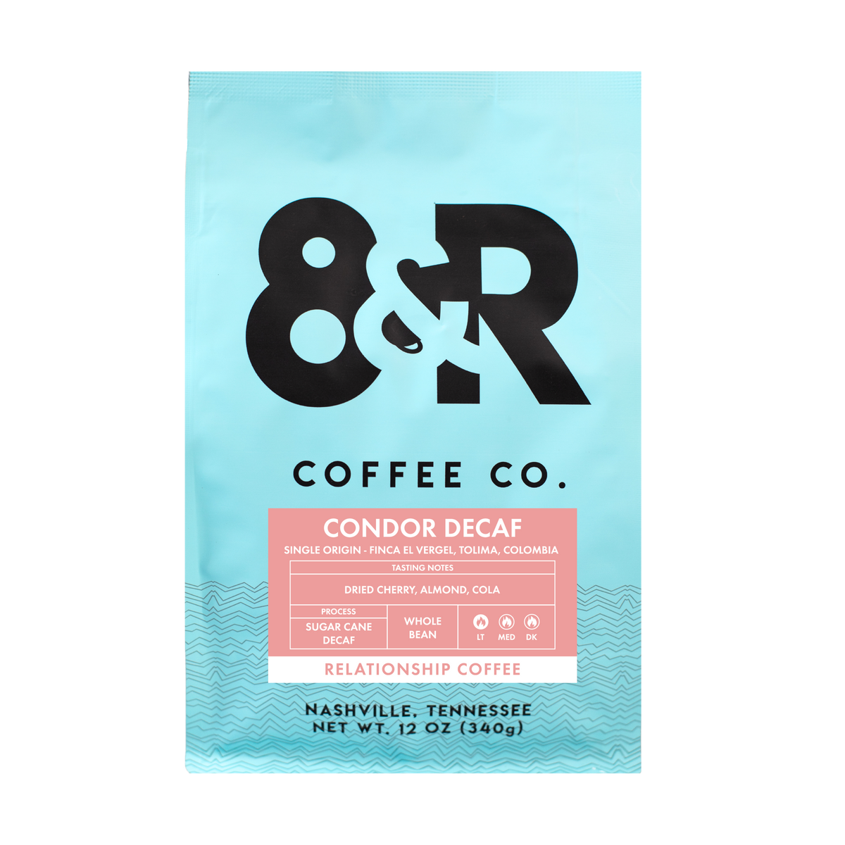 Our decaf is amazing—Condor Decaf is a single varietal (caturra) coffee produced by our friends Shady and Elias Bayter at their farm Finca El Vergel in Tolima, Colombia. It's not just great for a decaf, it's a great coffee all by itself. We're happy to be offering this coffee year-round and hope you enjoy it as much as our caffeinated offerings!