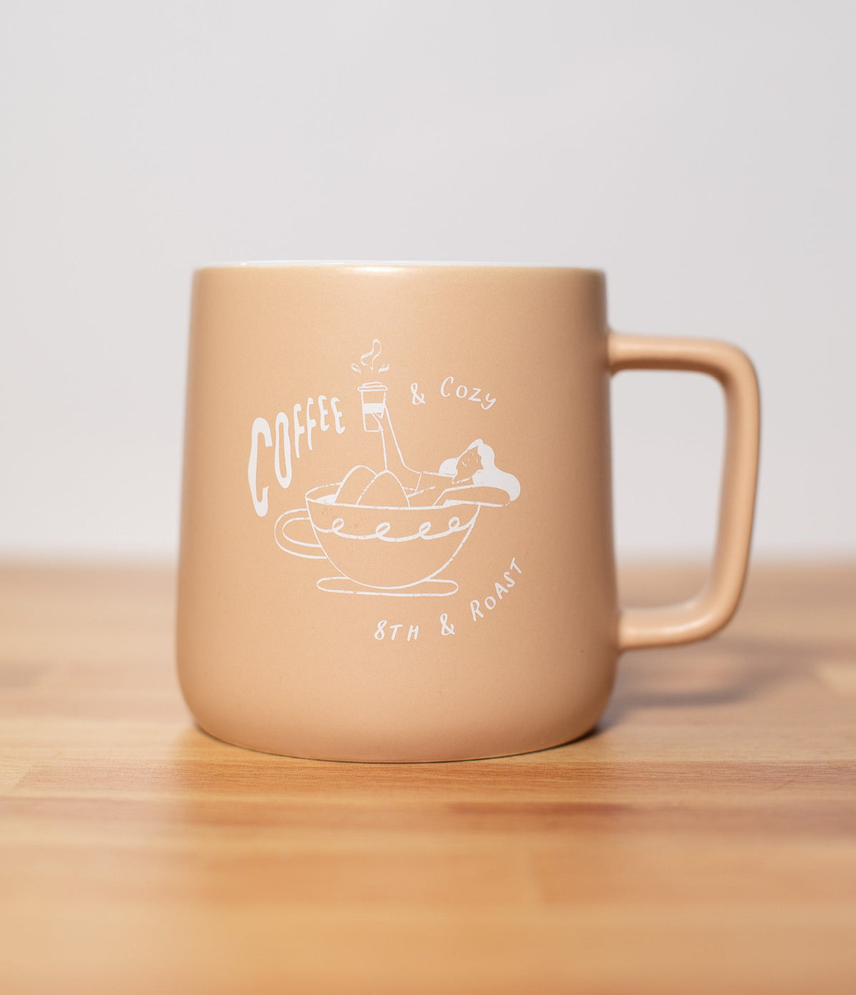 What better way to drink your 8th & Roast coffee than in a 8th & Roast mug! Enjoy all of your hot beverages in this ceramic 12oz vanilla colored mug.