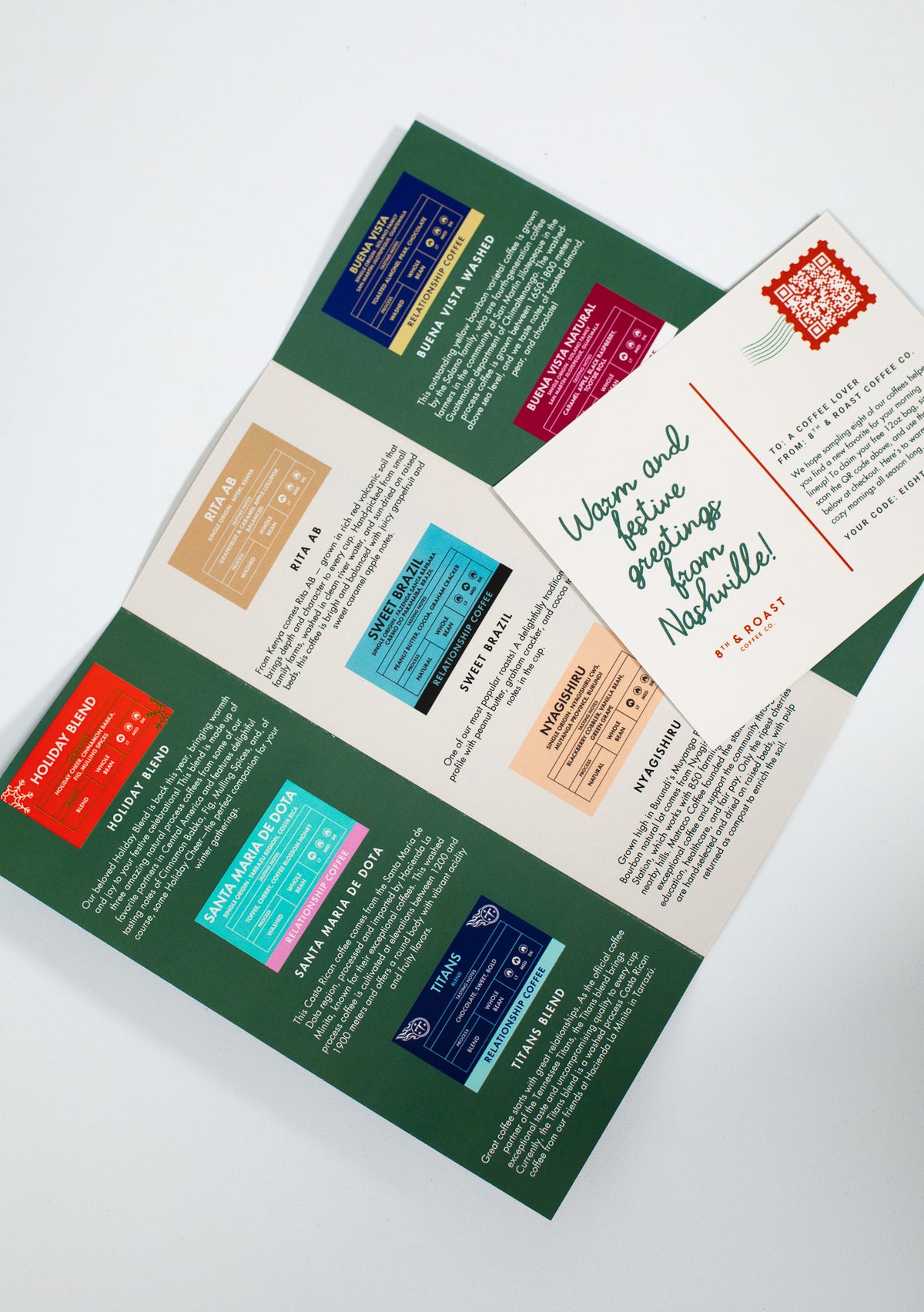 Each box also includes an informational trifold so you can learn about the stories, farms, and flavor profiles behind every coffee.